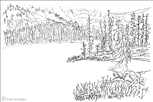 102 Cathedral Lake 2, ink sketch 22.5x15 in